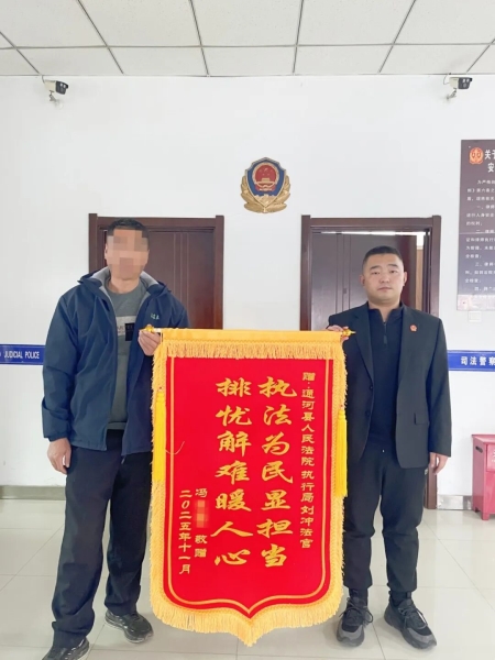 案件顺利执结后,冯某特地定制了一面锦旗送到法院。锦旗上,“执法为民显担当,排忧解难暖人心”十四个字格外醒目。冯某感激地说:“三年了!谢谢你们不远千里,为我讨回公道!”
